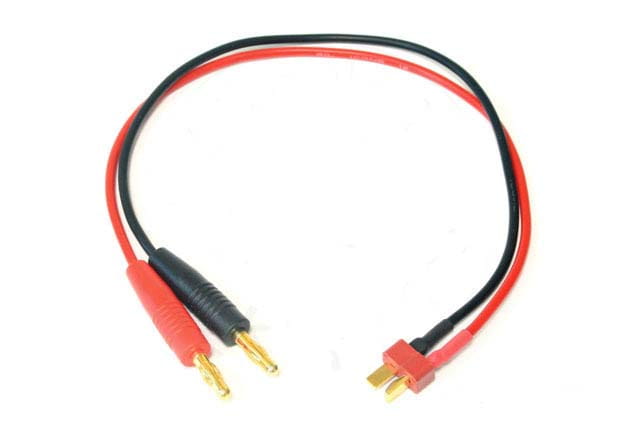 Przedłużacz, adapter pomocny przy ładowaniu pakietów ze złączem T (DEAN), ładowarkami z wejściem na goldy 4mm. Długość przewodu z konektorami 37cm.