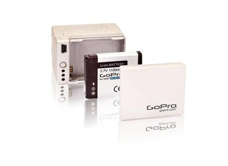 GoPro – Battery BacPac Doczepiana kasetka (z tyłu kamery) z dodatkową baterią. Dzięki temu rozwiazaniu można dwukrotnie wydłużyć czas filmowania bez konieczności wyłączania kamery i zmiany baterii. Kasetka służy również jako ładowarka, którą możesz p…
