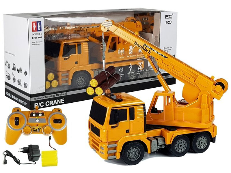 Prezentujemy zdalnie sterowaną ciężarówkę z dźwigiem – doskonały prezent dla tych, którym zwykła jazda już nie wystarcza. Prezentowana zabawka sterowana jest nadajnikiem pracującym na częstotliwości 2,4GHz i dodatkowo może jeździć do przodu, do tyłu, skręcać na boki ale posiada także działający dźwig z funkcją podnoszenia i opuszczania dołączonego ładunku, oraz obrotu o 360′. Krótko mówiąc mamy do czynienia z w pełni funkcjonalną maszyną, gotową do pracy.
