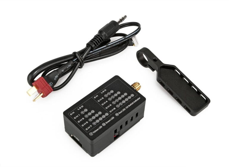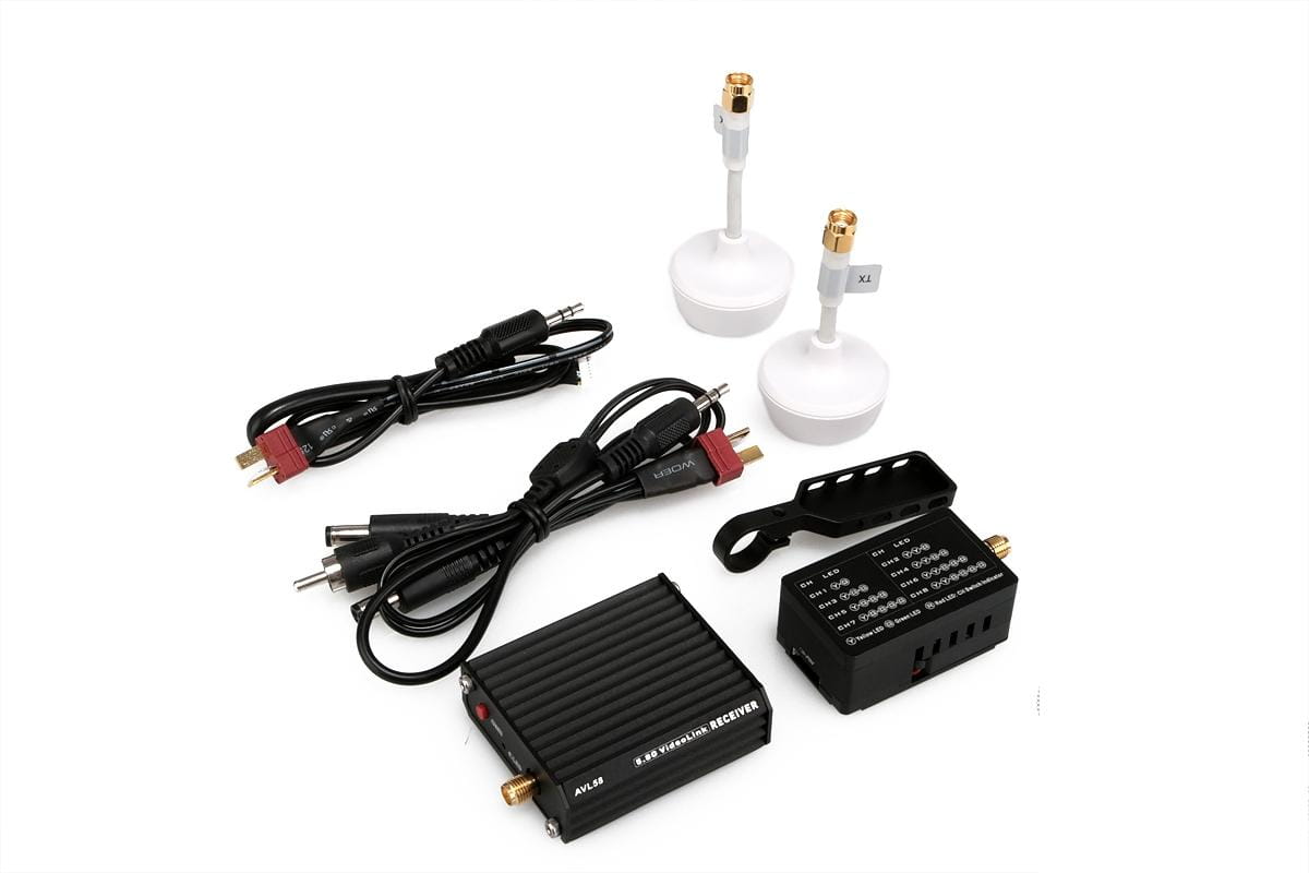With the OSD module from DJI, voltage, altitude, distance to home, and other features are displayed on screen. This will work with either a PAL or NTSC video transmitter and overlay all this information onto your fpv goggles or monitor. Two cloverleaf antennas are included with the Transmitter and Receiver.