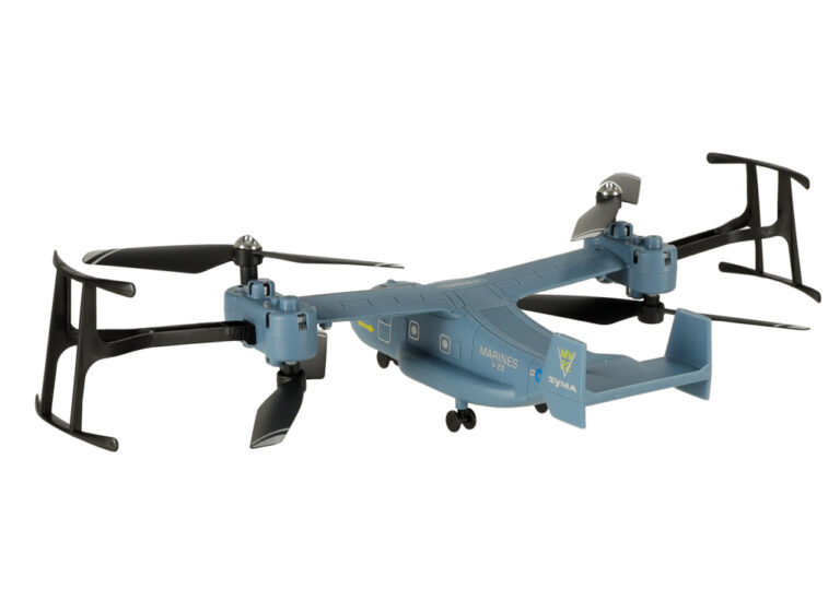 Dron V22 marki SYMA to fantastyczny produkt dla fanów modeli zdalnie sterowanych. Swoim wyglądem przypomina samolot, przez co wyróżnia spośród innych modeli. Dron jest zasilany akumulatorem, którego czas ładowania wynosi około 60 min. W zestawie znajdują się zapasowe śmigła, osłony śmigieł oraz kontroler na baterie. Zabawa dronem doskonale rozwija zdolności manualne oraz koordynację wzrokowo-ruchową.